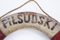 Koło ratunkowe z m.s. “Piłsudski”, wykonane z korka pokrytego płótnem żaglowym, podzielone na cztery części po przekątnych w kolorach: lewa, prawa - czerwone; górna, dolna - białe. Do obwodu zewnętrznego koła, przy pasach białych umocowana linka, która służyła jako uchwyty. Na pasie białym górnym nazwa statku “Piłsudski”, na dolnym białym “Gdynia”, pisane czarną majuskułą. Napisy na stronie spodniej mocno nieczytelne. Wymiary: średnica zewnętrzna koła 80 cm, grubość obręczy 40 cm, szerokość obręczy 20 cm.