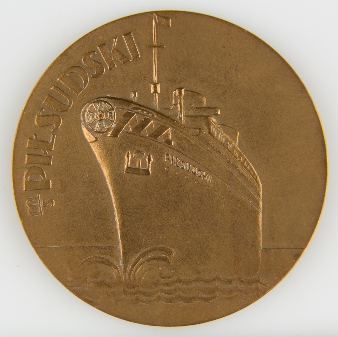 Medal wybito dla uczczenia dziewiczego rejsu MS „Piłsudski”. Powstały również dwa inne medale upamiętniające pierwszy rejs MS „Piłsudski”, z tym samym awersem, lecz innymi rewersami. Na jednym na rewersie zaznaczono trasę podróży z Monfalcone przez Morze Śródziemne, Atlantyk i Morze Północne, na Bałtyk do Gdyni oraz daty tej podróży: 27 VII-12 IX 1935. Na drugim na rewersie zaznaczono trasę z Gdyni do Halifax i Nowego Jorku oraz daty podróży: 15 IX – 24 IX – 29 IX – 8 X 1935.