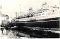 Zdjęcie przedstawiające MS „Piłsudski” w porcie w Gdyni w okresie zimowym. Wymiary: 13,5x8,5 cm.