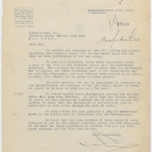 List do Dyrektora GAL w sprawie statku „super-Piłsudski”