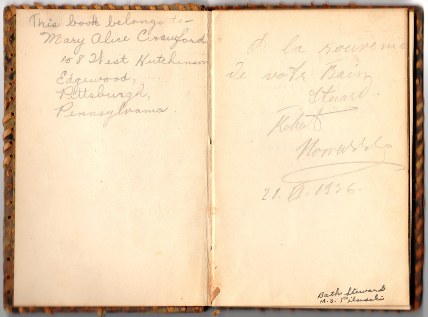 Notes (pamiętnik) z autografami członków załogi i pasażerów m.s. „Piłsudski” oraz MS „Batory”, należący do Mary Alice Cranford z Pittsburgh/Pensylwania (USA), która kolekcjonowała wpisy i autografy wybranych osób na pokładach „Piłsudskiego” i „Batorego” podczas rejsów. Jest tam m.in. wpis Kapitana Mamerta Stankiewicza z dn. 21.06.1921 roku. Wymiary: 10,5x15,5 cm.