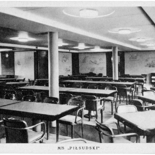 Jadalnia klasy trzeciej. Zestaw pocztówek MS „Piłsudski”